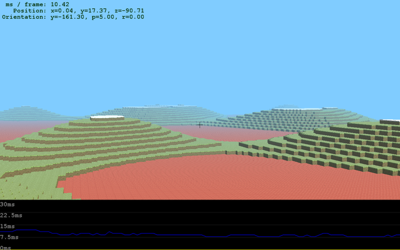 I know, I know. It's not particularly sexy, but it gets the job done. It's also poorly implemented, but I wanted to stop taking so much care in everything I do and start getting things done. The only system that has any level of computation (the blue line that you see) is the window system, and that's because its update function does a buffer swap.