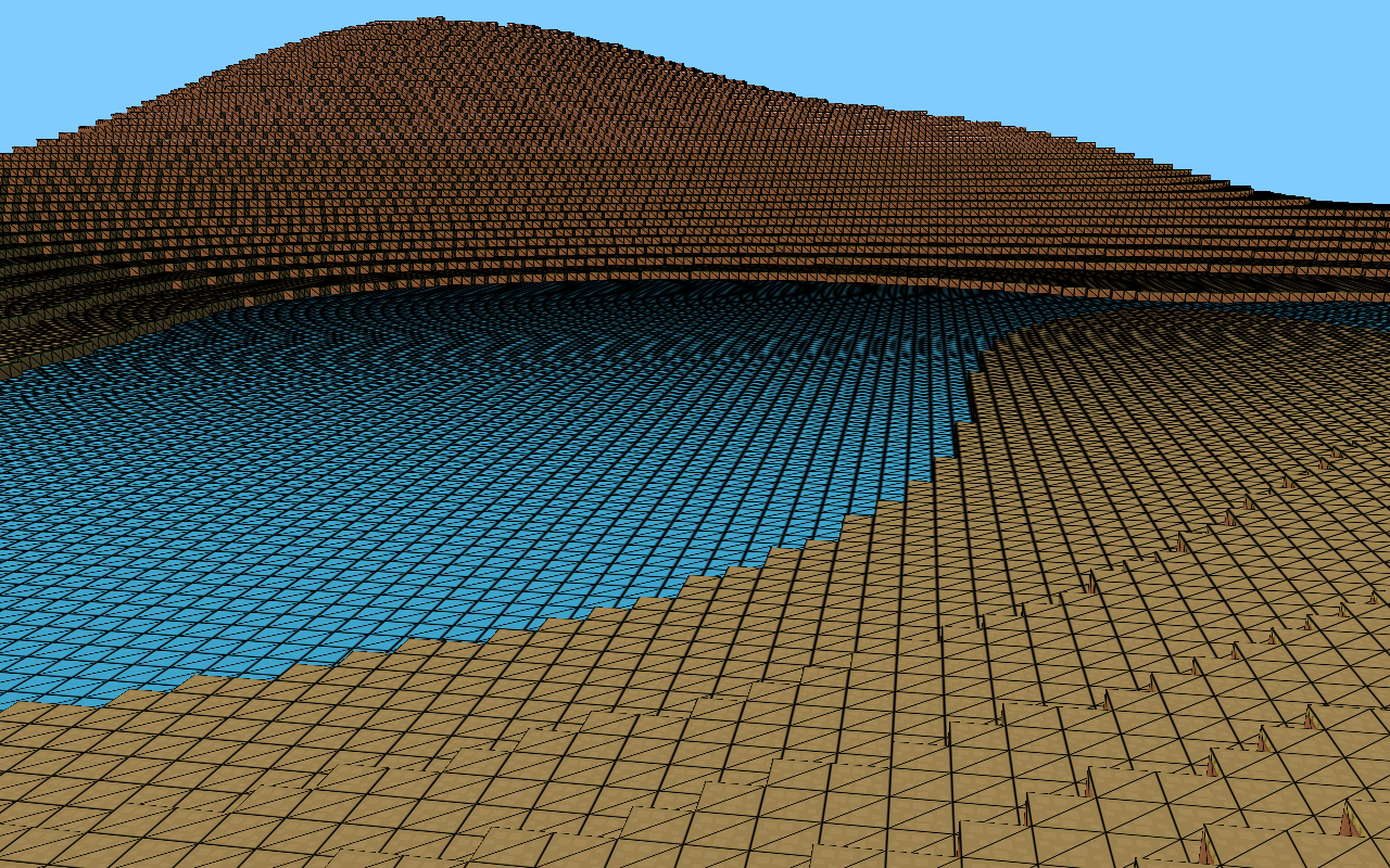 I've been busy working on improving the performance in my voxel engine over the past week. The biggest improvement came from implementing greedy voxel meshing, which is what this entry is all about. I'm going to put a little more effort into creating higher quality blog posts from now on, with a focus on explaining a concept or algorithm through visualization. If you have any suggestions for improvements or blog posts to write, leave me a comment.